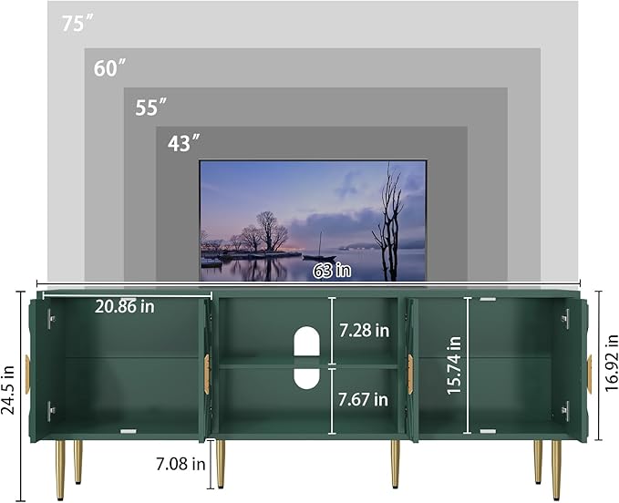- 【Sturdy and Safe】This tv stands for living room is made of P2 class MDF boards and lead-free environmentally friendly paint. The special waterproof coating makes the surface smooth for easy cleaning. The 6 heavy-duty gold legs are made of solid wood for added weight-bearing capacity.