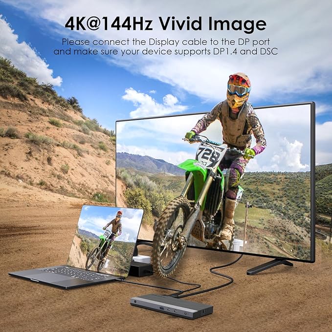 - Triple Display or Dual Monitor: Equipped with dual DP and one HDMI port,Single DP can up to 4K@144Hz under DP1.4 source. Resolution will be 4K@60Hz if two monitors play simultaneously.Connect up to three monitors simultaneously.it perfect for expanding multiple displays for meetings, presentations, stock chart analysis, programming, and more.(Pls Note: Please make sure that the USB-C port on the host laptop supports video output)