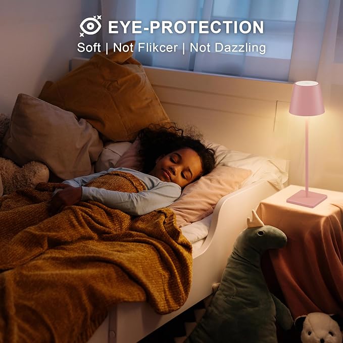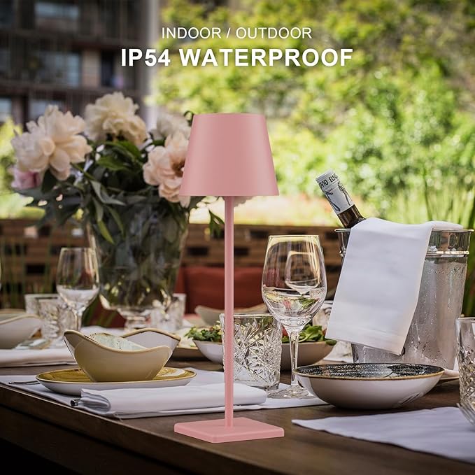 2-Pack LED Cordless Table Lamp, Rechargeable Battery Desk lamp 3W 5500mAh Battery Operated Stepless Dimming Modern Portable Table Light for Restaurant/Bedroom/Outdoor IP54 Waterproof (Pink)