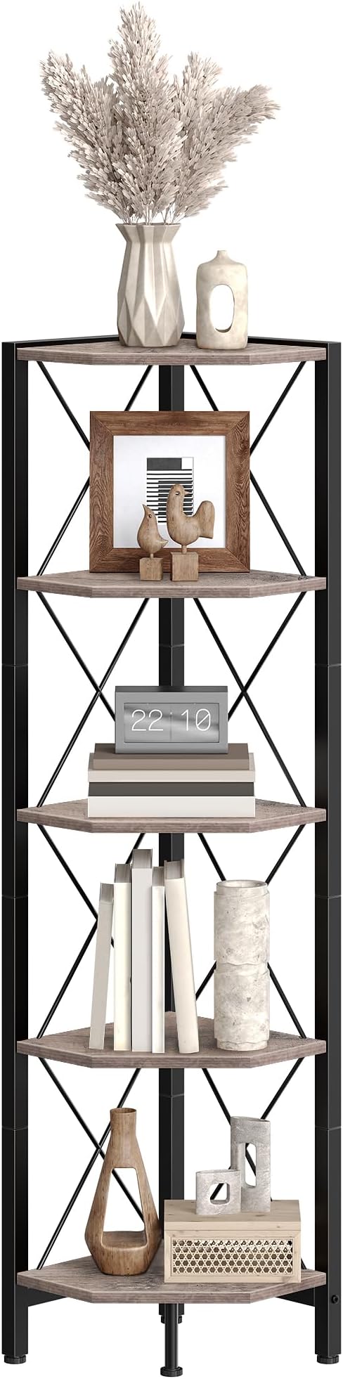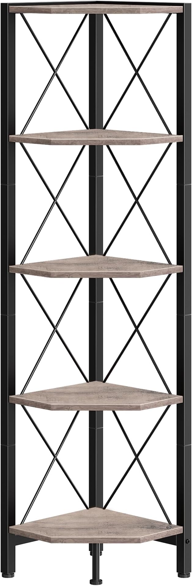 - Sturdy Construction: Crafted from sturdy particleboard and a robust metal frame, this corner bookshelf offers a reliable structure and each shelf supports up to 44 lb. The anti-tip straps and adjustable feet are included to ensure overall stability for safer use