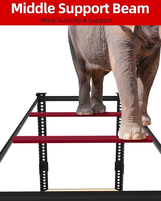 - 【Thicken Heavy Duty Metal Storage Shelves】PrimeZone garage shelving is composed of high-quality metal frames with powder-coated finished and thickened wood boards. Each shelf add 2 additional middle support beams. The heavy duty shelving has a load capacity of 650 lbs per tier, and a total load capacity of 3250 lbs for 5 tiers storage rack.