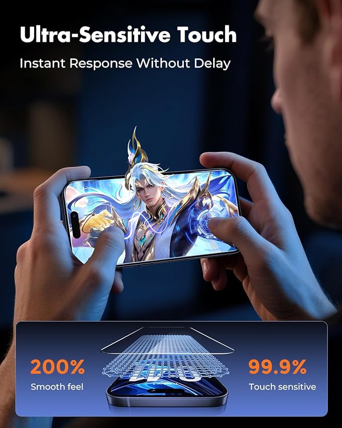 - Clarity & Sensitivity: Our ultra-thin screen protector is 0.01 inches thick, nearly invisible, and offers 99.9% clarity. Enjoy a vibrant display with silky smooth touch sensitivity for quick, natural responses.