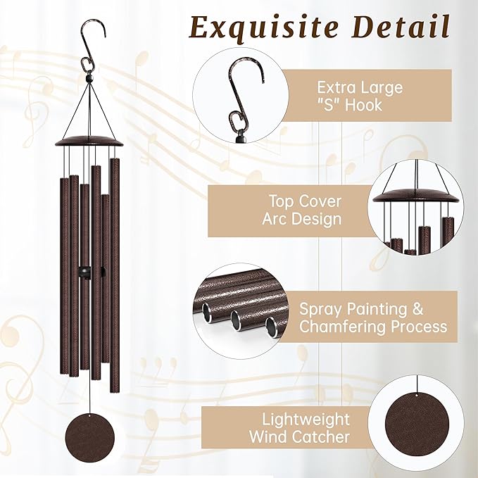 38" Large Wind Chimes with Classic Sound, Coolest Metal Windchimes Outdoors with Pine Wood Striker, Unique Gift for Mom, Garden Decoration(Frosted Brown)