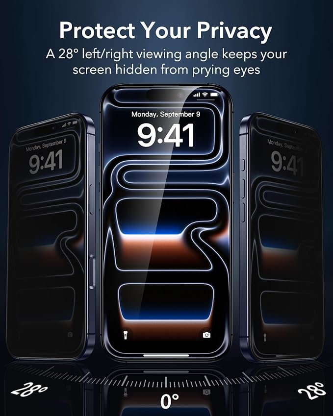 - Powerful Privacy Protection: advanced privacy filter effectively blocks views from left/right angles over 28°, ensuring that only you can see what's on your iPhone 17 Pro screens