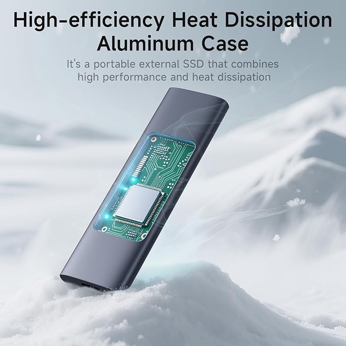 - Durable and Lightweight Aluminum Build : Crafted from a unibody aluminum alloy, this 500GB external hard drive is sleek, impact-resistant, and fingerprint-proof—offering both portability and protection. Note: A slight warmth during use is normal.The internal SSD structure generates heat during high-speed data transfers, and the metal casing helps dissipate it efficiently.Tested under long-term and high-temperature conditions, the drive operates safely within 32°F to 158°F, ensuring reliable and worry-free use