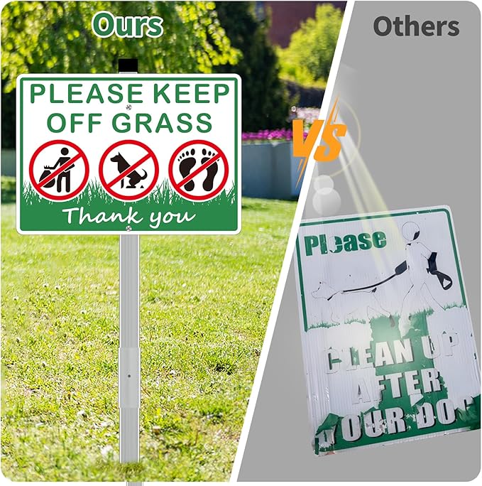 - 2. Easy to install: Our keep off grass signs for yard are extremely easy to install with stake, making the no dog poop signs for yard easy to install and ensuring it stays securely in place without easily falling off. The sign comes with metal stakes and screws, making installation quick and easy.