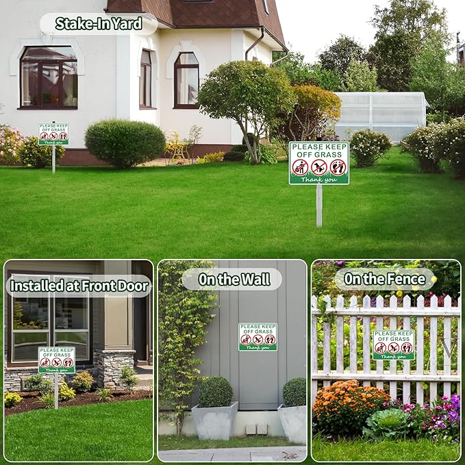 - 8. Versatile Application for Multiple Lawn Types: Perfect for residential lawns, public parks, golf courses, and newly seeded grass areas, these keep off grass sign with stake provide flexible protection where needed. The portable design allows you to easily move and reposition the signs as your lawn care needs change.