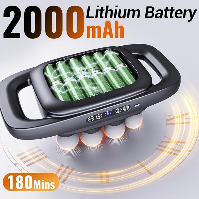 - Quiet Operation & Hands-free Operate: No loud buzzing to disturb others—our back massage gun operates quietly, ideal for home or office use. The 2000mAh lithium battery provides up to 3 hours of continuous use on a single charge, with convenient USB charging (cable included) for on-the-go power. Simple one-button controls make it easy for anyone to use, no complicated setup required.