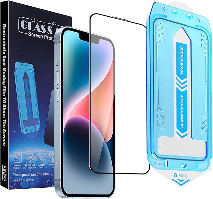 2-Pack Screen Protector for iPhone 13 Pro Max/iPhone 14 Plus, 9H Tempered Glass, High Definition Clear, Full Coverage, Anti-Fingerprint, Auto Dust-Elimination, No Bubble, Easy Installation