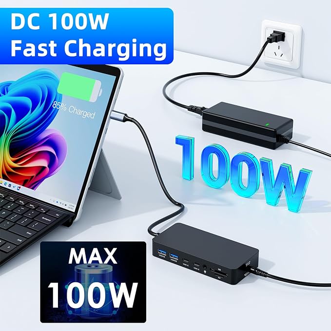 - ⚡【 Minimal Design】The DC charging port supports 100W, which allows you to charge your Surface quickly(DC Charging Adapter Included). As one of the latest Microsoft Surface accessories, then stay powered all day for meetings, creativity, streaming and more.The 12-in-1 Microsoft Surface Thunderbolt 4 Dock features a clean, minimalist design that complements your workspace.