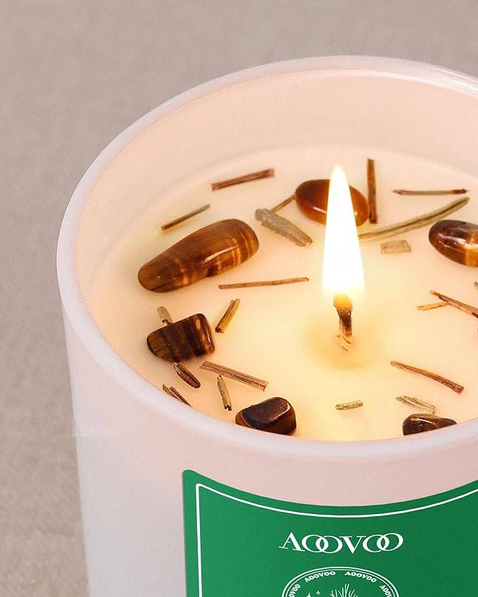 AOOVOO Cedar Scented Candles for Women - Aromatherapy Candle with Crystals Inside, 10oz Soy Candles for Home Scented, Birthday Gifts Candle for Women Mom
