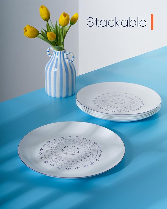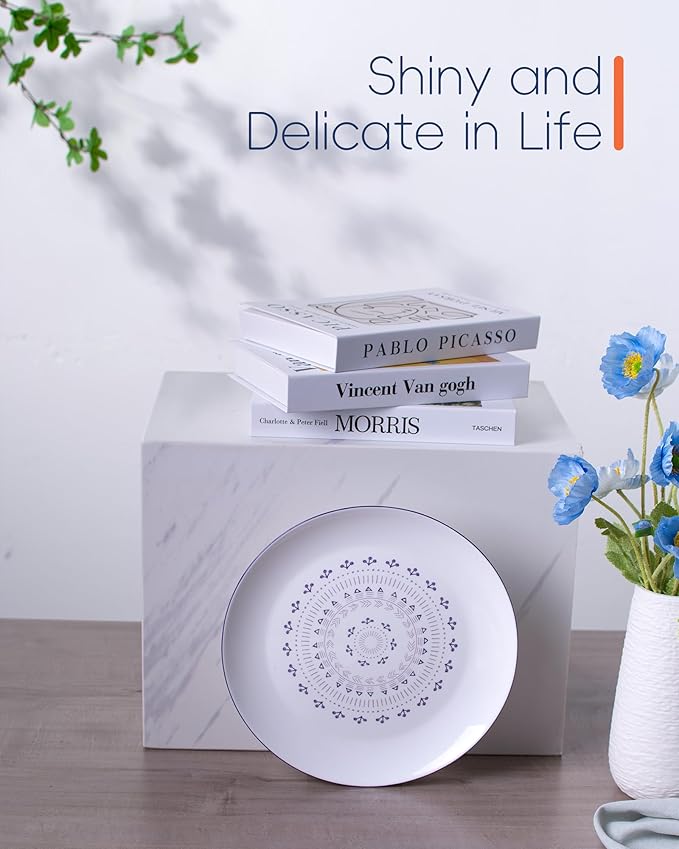 - Easy to Clean & Safe for Everyday Use – A slight odor or fine particles may appear when first opening due to the protective glass coating; simply rinse before use and enjoy odor-free, crystal-clear plates. Designed with a non-porous, ultra-hygienic surface, they require less detergent and energy to clean, and are dishwasher, microwave, and refrigerator safe