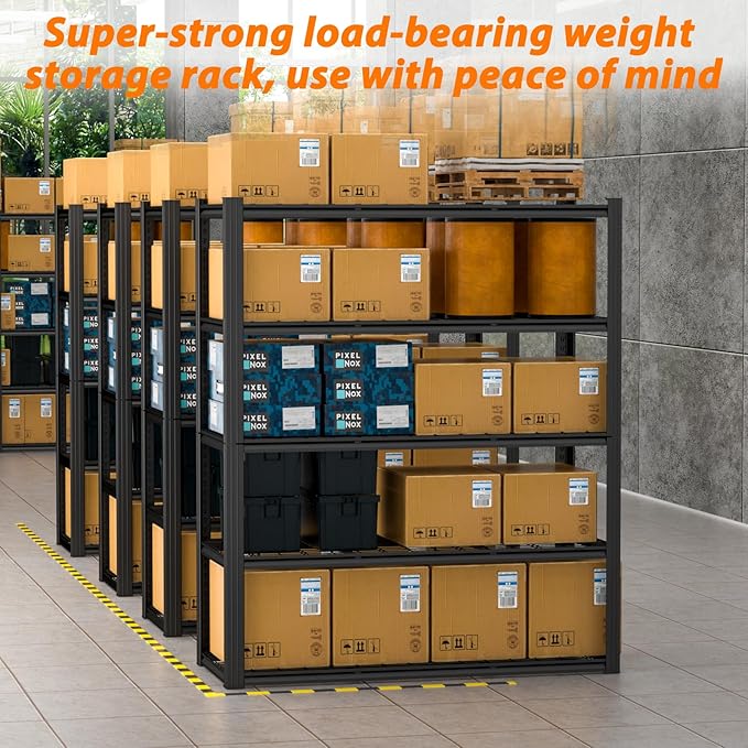 - 【Rust-Proof & No-Scratches Storage Racks】 The metal shelving uses an anti-rust painting tech, easy to clean, moisture-proof and rust-proof.You will obtain two pairs of anti-tipping kits to prevent basement shelves from shaking or tipping over. All legs are equipped with pads to prevent it scratching the floor. Our garage storage racks and commercial shelves w can better support your commodities and maintain stability.
