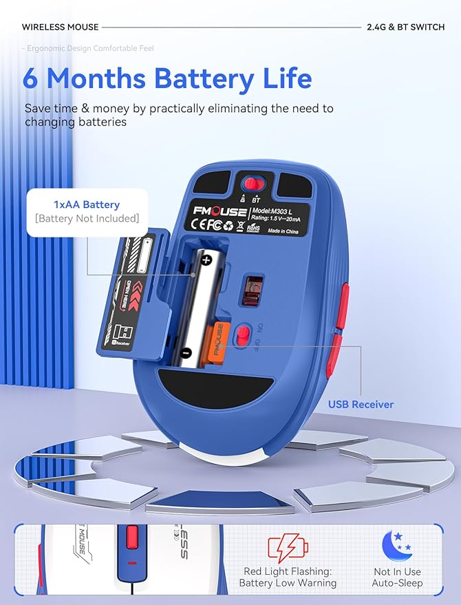 - Battery Efficiency: Powered by a single AA battery, this wireless mouse eliminates downtime. Enjoy instant-on functionality without waiting for recharges, ideal for office, travel, or mobile work.