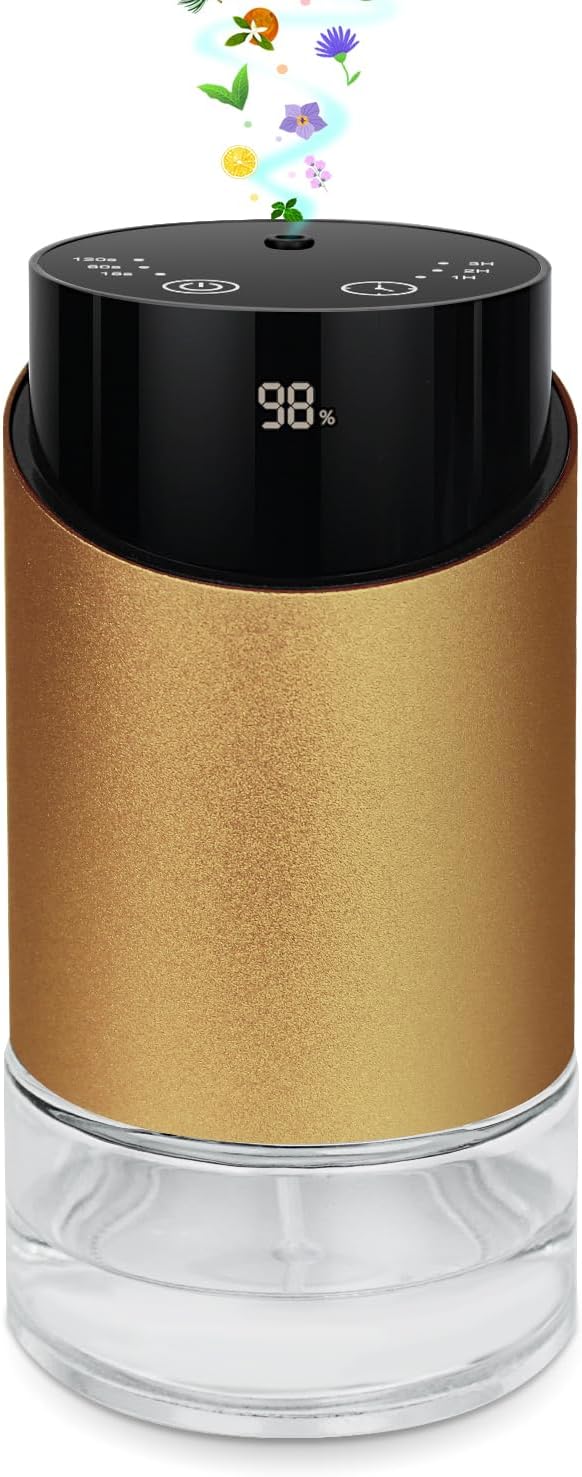 - [New-Release Diffuser Combining Classic and Modern Craftsmanship] This waterless diffuser, based on the original model, added battery display and is more compact in size, reflecting a minimalist design. The cylindrical high-quality metal body brings elegance, while the glass base adds a vintage touch. Our industry-leading heat-free and waterless diffusion technology converts essential oils or fragrant oils into nano-sized steam particles, providing the purest form.