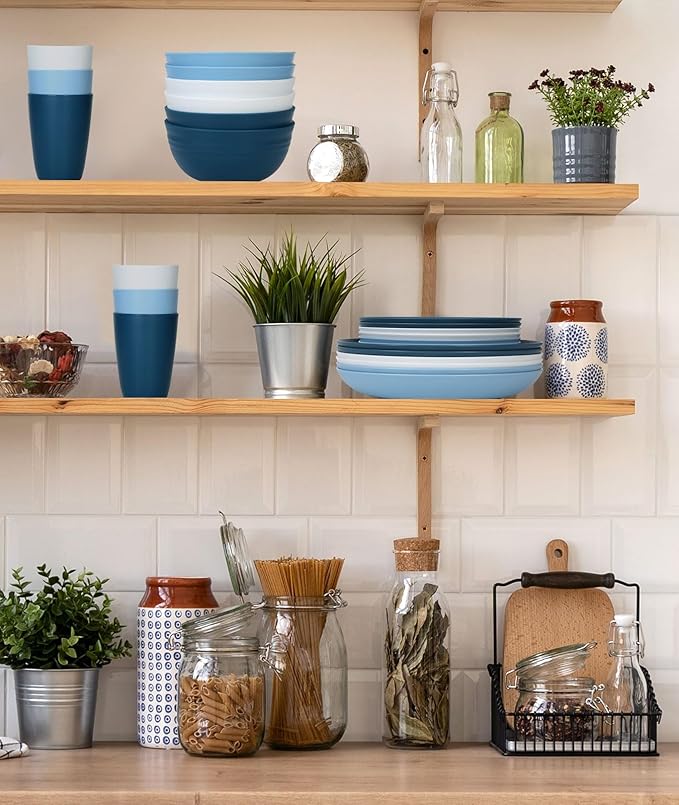 Quatish 24 Piece Plates and Bowls Sets for 6, Unbreakable Dinnerware Sets, Plastic Dish Set for Camping, Dishwasher Microwave Safe, Outdoor Kitchen and Apartment Dinning RV Essentials, Blue
