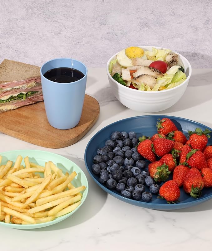 - Durable and Kid-Friendly: Nearly unbreakable, shatterproof plastic dinnerware set with raised edges, resistant to chipping, scratches, and wear-related damage. Ideal for camping, RVs, beach houses, and safe for toddlers and children