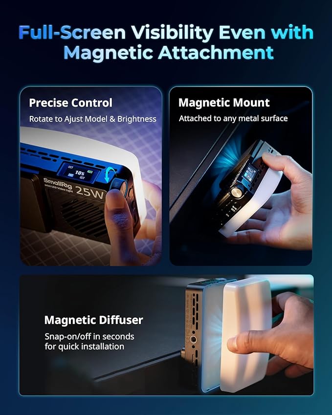 - Multi-Scene Versatility: SmallRig RM 25C video light panel includes a magnetic diffuser for pro-grade portraits—attach or detach in seconds to soften light or enhance details effortlessly. Ideal for YouTube/TikTok videos, Zoom meetings, live streaming, makeup tutorials, and low-light photography. Also perfect as a photography gift for your loved and friends.