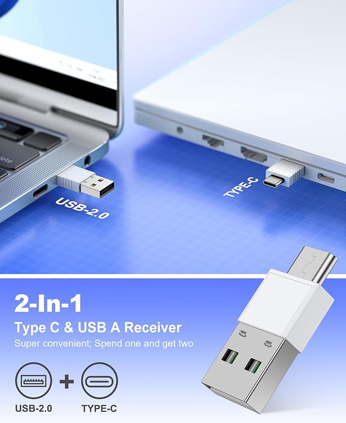 - 【Plug and Play & RF 2.4G USB Mode】UBS wireless receiver, 2.4G wireless RF technology, plug and play wireless receiver, no software installation required, no hassle in setting up
