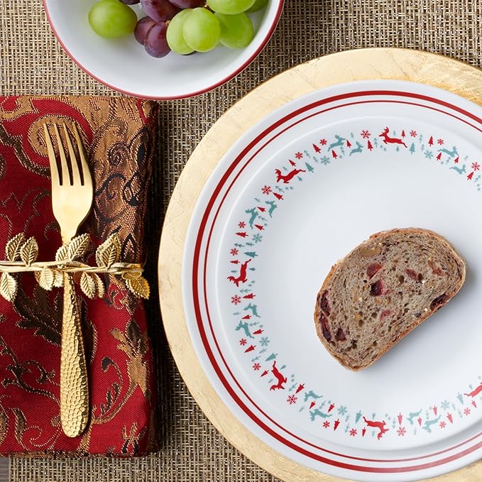 - CLASSIC STYLE: Add some style to your eating experience, and make your dinnerware the topic of conversation. This dinnerware set features a bold but elegant red trim.