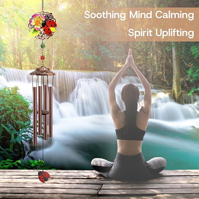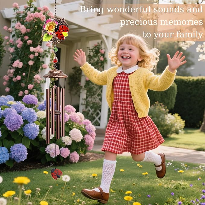 Beetles Wind Chimes Outdoor Beetle Gifts for Women/Men/Mom/Grandma/Wife Birthday Gifts Memorial Gift Metal WindChimes for Outside/Indoors, Home, Lawn, Porch, Patio, Garden Decor,