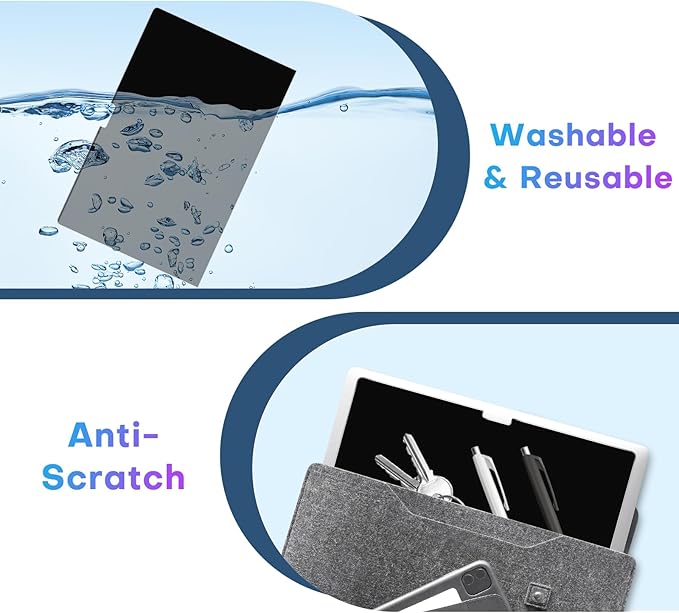 - Durable Design:This privacy screen protector is durable, scratch-resistant, fingerprint-resistant, and easy to clean, keeping your screen looking like new. The screen protector is reusable and washable. If dust or fingerprints accumulate, simply rinse with water, let it dry naturally, and reapply for a brand new, secure fit.