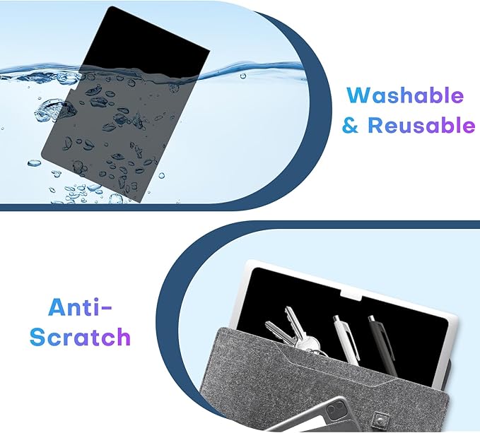 - Durable Design:This privacy screen protector is durable, scratch-resistant, fingerprint-resistant, and easy to clean, keeping your screen looking like new. The screen protector is reusable and washable. If dust or fingerprints accumulate, simply rinse with water, let it dry naturally, and reapply for a brand new, secure fit.