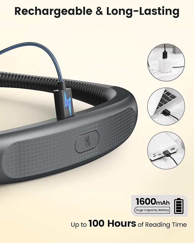 - [Rechargeable and Long-Lasting] The reading lights for books in bed feature a high-capacity 1600mAh rechargeable battery, delivering an exceptional 100 hours of runtime. A full charge is quickly achieved in just 3 hours.