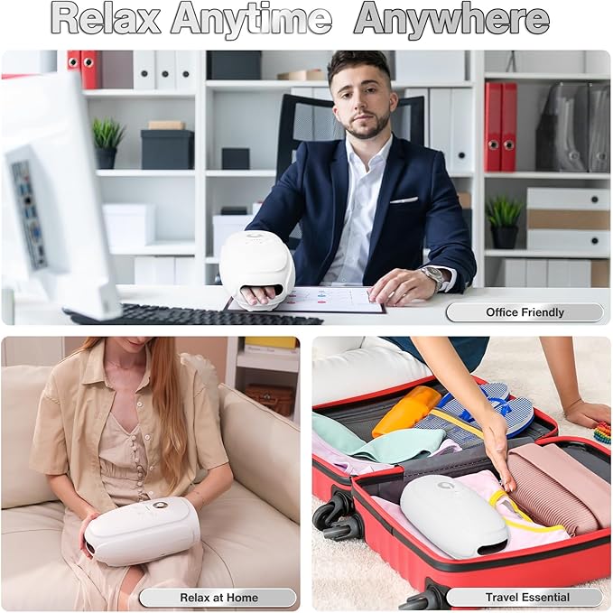 - Cordelss & Portable: This electric hand massager with a built-in 2500mAh rechargeable battery that can lasts up to 3 hours per full charge. Whether you're relaxing at home, taking a break at work, or traveling, you can enjoy gentle, relaxing hand massage at anytime, anywhere.