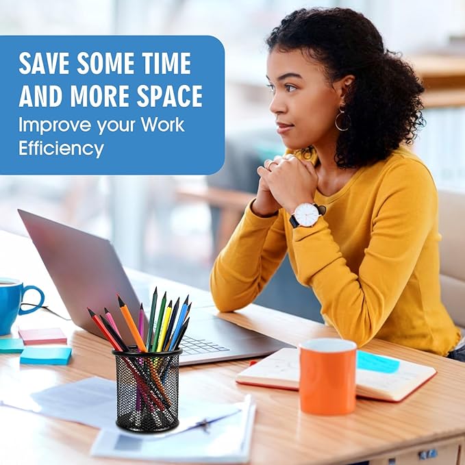 - CAREFULLY DESIGNED : This classic, elegant, and meticulously designed black wire mesh pencil cups / desk organizer keeps your desk looking sleek and sophisticated.