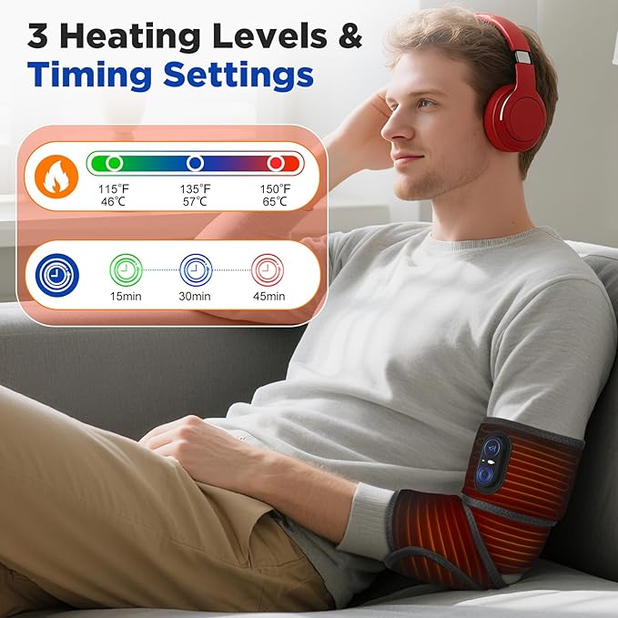 - 【Specifications & Included Items】Your heating pad for arm comes with the wrap, USB-C cable, and manual. Select from 3 heat levels (113°F-122°F-131°F) and use the 3 timer modes auto shut-off (15/30/60 minutes) feature for safe and convenient