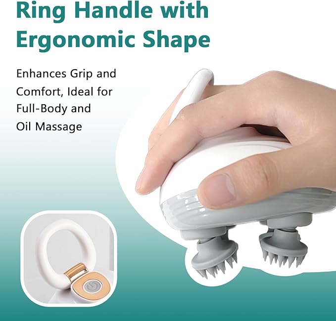 - [Ergonomic & Portable Design] This electric head massager has a compact, ergonomic structure that fits comfortably in your hand, making it easy to use. Its lightweight, portable, cordless design makes this electric massager ideal for home, office, or travel use, and the hanging loop allows for easy storage and organization, saving you space.