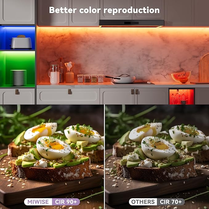 - High Quality: The double-layer pure copper PCB design not only provides excellent and reliable stability for the RGB COB LED strip light, but also significantly improves the heat dissipation effect of the strip light! A higher color rendering index provides more realistic color effects for your space. The stable performance of MIWISE RGB COB LED strip light provides a service life of more than 65,000 hours, which fully meets your needs!