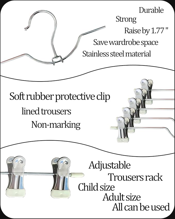 - Material : Metal Jeans Hangers for Adult, Rubber Grip Hangers for Skirt