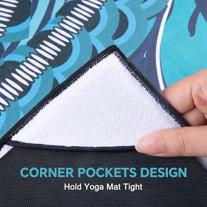 - Corner Pockets Design: Features 4 corner pockets on the backside, the non slip yoga mat towel helps secure and hold onto the mat firmly. This allows you to focus your mind, body and breath on the yoga practice, without worrying about bunching.