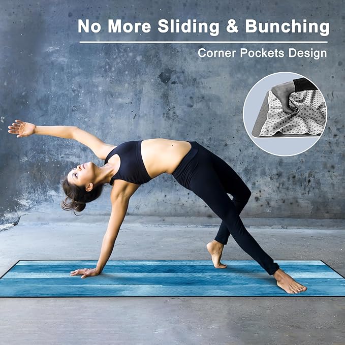 - Corner Pockets Design: Features 4 corner pockets on the backside, the non slip yoga mat towel helps secure and hold onto the mat firmly. This allows you to focus your mind, body and breath on the yoga practice, without worrying about bunching.