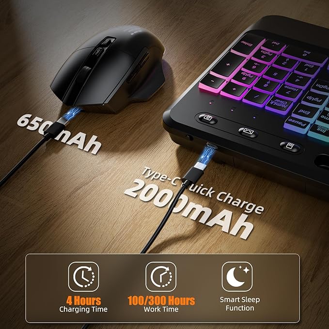 - Smart Power-Saving & Rechargeable Battery: This wireless keyboard mouse combo uses smart power-saving. The keyboard sleeps after 2 minutes idle. The mouse powers down in stages (1 sec, 60 sec, deep sleep at 10 min). Instantly wake either device with zero lag. Features a rechargeable battery (no replacements) – convenient charging when depleted