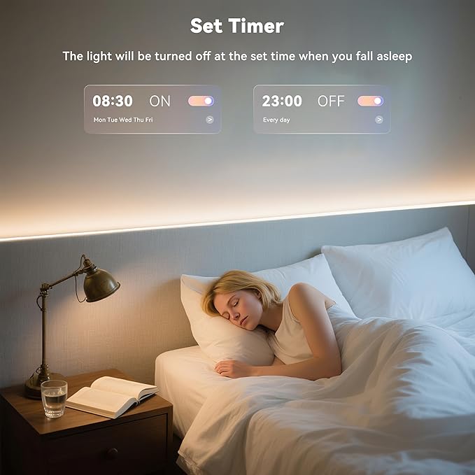 - Music Sync Mode:Equipped with a built-in high-sensitivity microphone for automatic music synchronization.Watch your RGB Smart LED strip pulse,dance,and change to the beat of your music.Perfect for creating an immersive party atmosphere