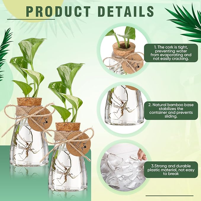- Multiple Combinations: including 12 plastic plant cultivation bottles, 12 perforated wooden plugs, 24 thank you tags, and 16.4 ft/ 5 m hemp rope, which can meet your various plant needs and are suitable for plant lovers; The transparent material can observe the growth of plants and changes in water levels, and the appropriate size also provides space for plant growth
