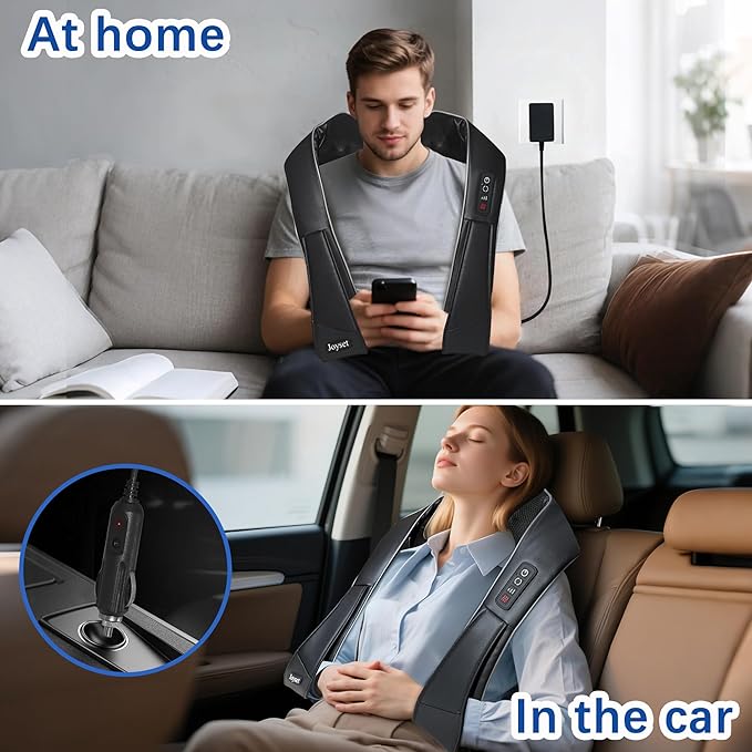 - Enjoy a deep massage anytime, anywhere: Back massager comes with a home power adapter and a car charger. So you can sit on the sofa, watch TV and enjoy a relaxing (or more intense) shoulder massage, or you can have a heat-sensitive massage in the car or while travelling and enjoy a private massage whenever and wherever you want