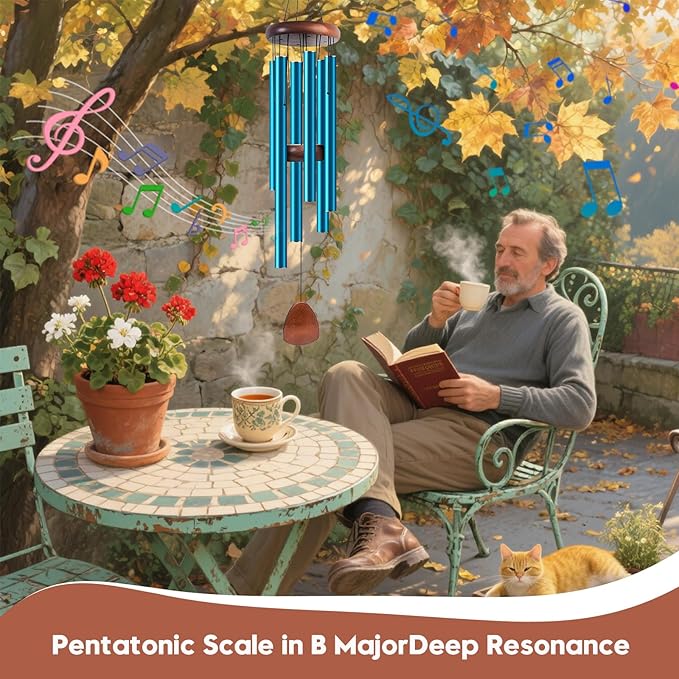 Aluminum Wind Chimes for Outdoor Garden and Yard with Soothing Deep Tones, Creates a Peaceful Ambiance with Sophisticated Wind Catcher, Ideal Calming Gift for Families (Blue, 37 Inches)