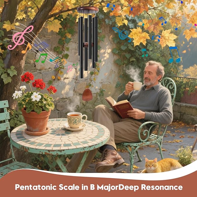 Aluminum Wind Chimes for Outdoor Garden and Yard with Soothing Deep Tones, Creates a Peaceful Ambiance with Sophisticated Wind Catcher, Ideal Calming Gift for Families (Black, 37 Inches)