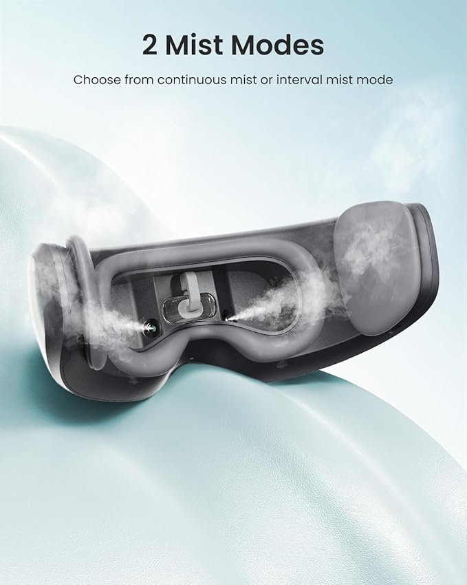 - Spa-Like Mist for Eyes:The massaging eye mask includes a detachable mist module that's easy to refill and clean. It features 2 mist modes (continuous/interval), delivering nano-level mist particles to deeply hydrate and refresh tired eyes.Tip: The mist function is for the eyes only, and the compression massage is for the temples only.