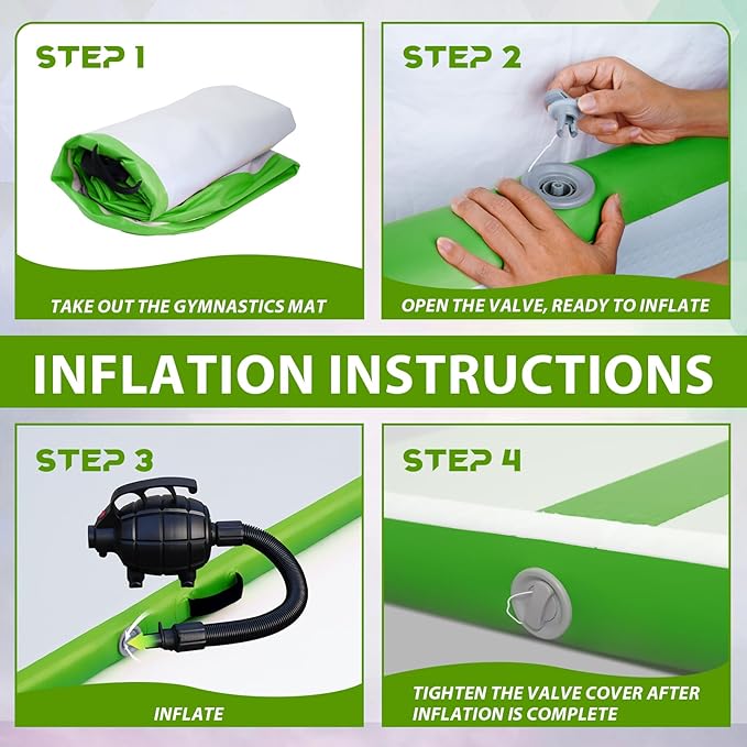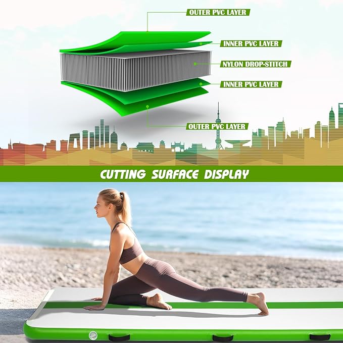 Tuxedo Sailor Inflatable Gymnastics Mat with Electric Pump, Storage Bag, Repair Kit–Air Mat for Home Training, Cheerleading, Yoga