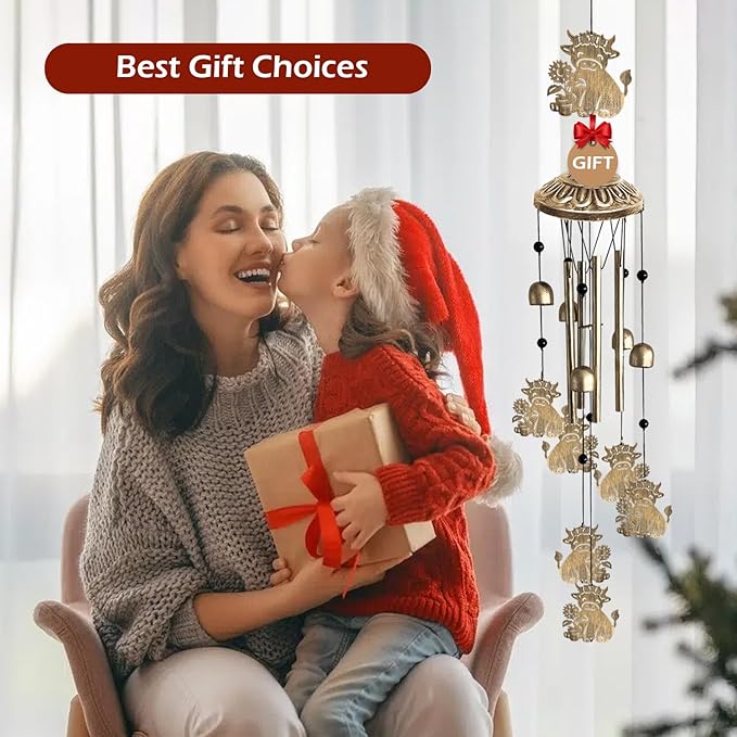 Wind Chimes for Outside, Metal Wind Chimes House Outdoor Decor for Garden Backyard Front Porch Patio, Mom Women/Men Birthday House Warming Gifts, Highland Cow Windchimes