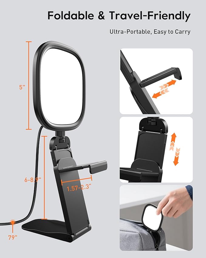 - Adjustable Clip & Stand – Broad Compatibility: This webcam light features a screen-safe clip that mounts securely to laptops, monitor, desktops and phone—no scratches, no pressure. Forget the worries of bulky clamp-on lights—enjoy safe, stable, and professional lighting every time.