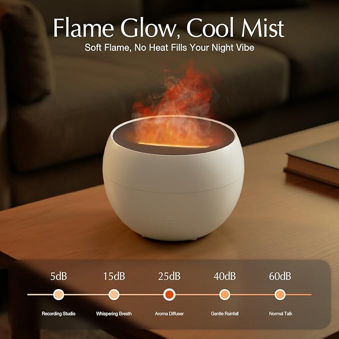 - Whisper-Quiet Operation: Designed with ultrasonic technology, this diffuser works quietly to ensure your peace is never disturbed. Our flame diffuser is featured an ultra-quiet operation of less than 24dB, which creates a peaceful environment to help soothe your mood, it won’t disturb your sleep, study, or relaxation time.