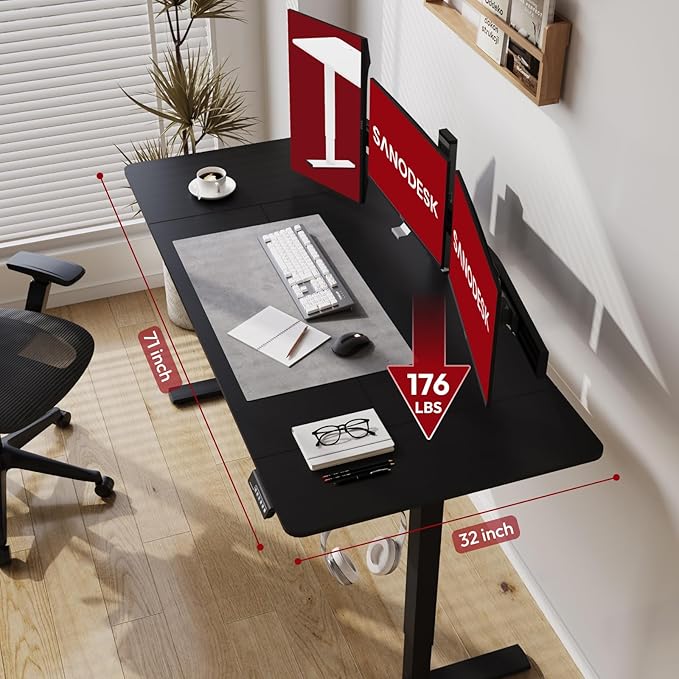 SANODESK Electric Standing Desk 71x32 Inch Height Adjustable Stand Up Desk Home Office Computer Workstation Sit Stand Home Office Desk with Splice Board (Black Frame + Black Top)