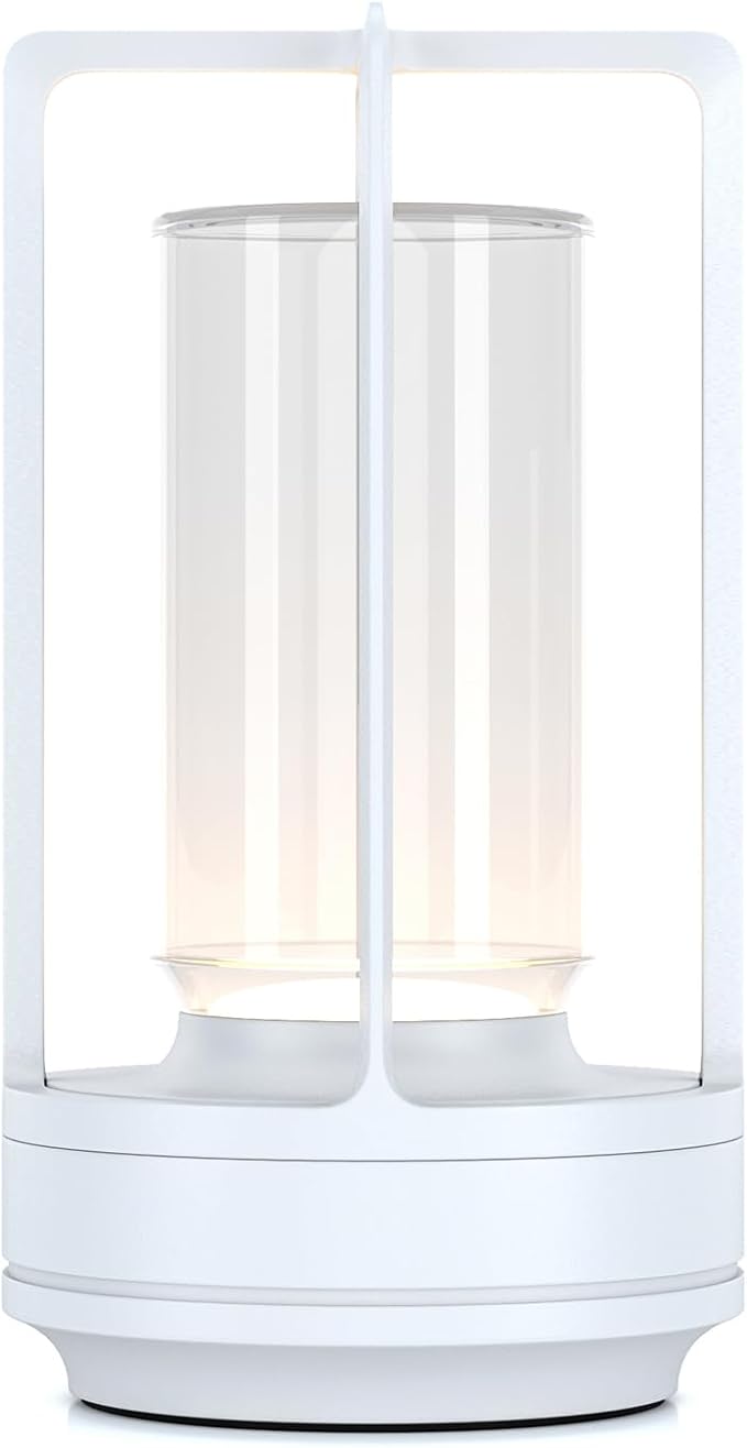 Portable Outdoor Table Lamp, Cordless Dimmable Touch Table Light, Rechargeable Battery Operated Small Lamp with 3 Colors and Brightness Control for Bedroom/Patio/Camping/Bar/Coffee Shop (White)