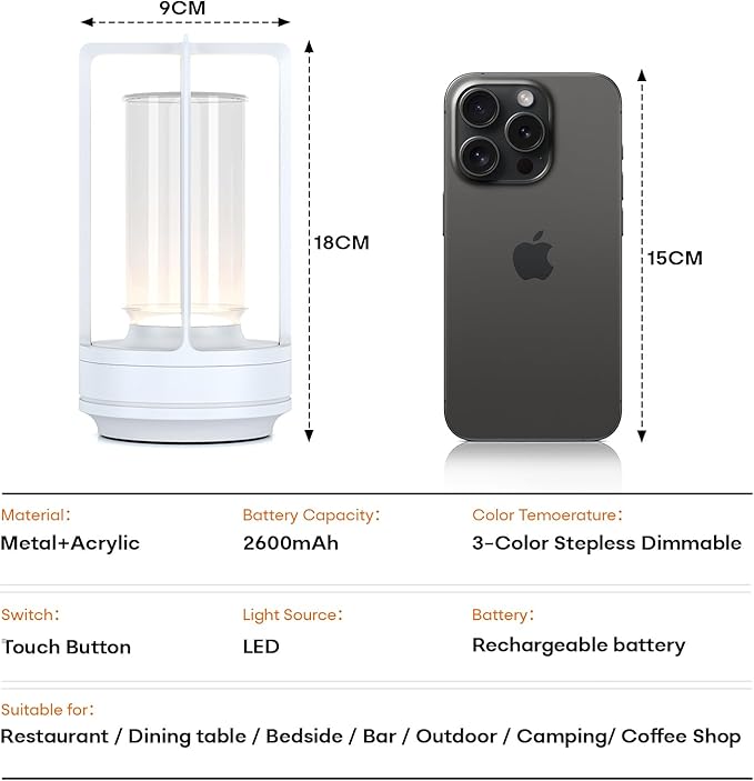 - ✨ [ Premium Aluminum Alloy Build & Portability ] Crafted with high-grade aluminum alloy and precision-engineered for durability, this sleek table lamp features a luxury feel that travels anywhere. Its cordless design means instant ambiance for your nightstand, patio, or on-the-go adventures.